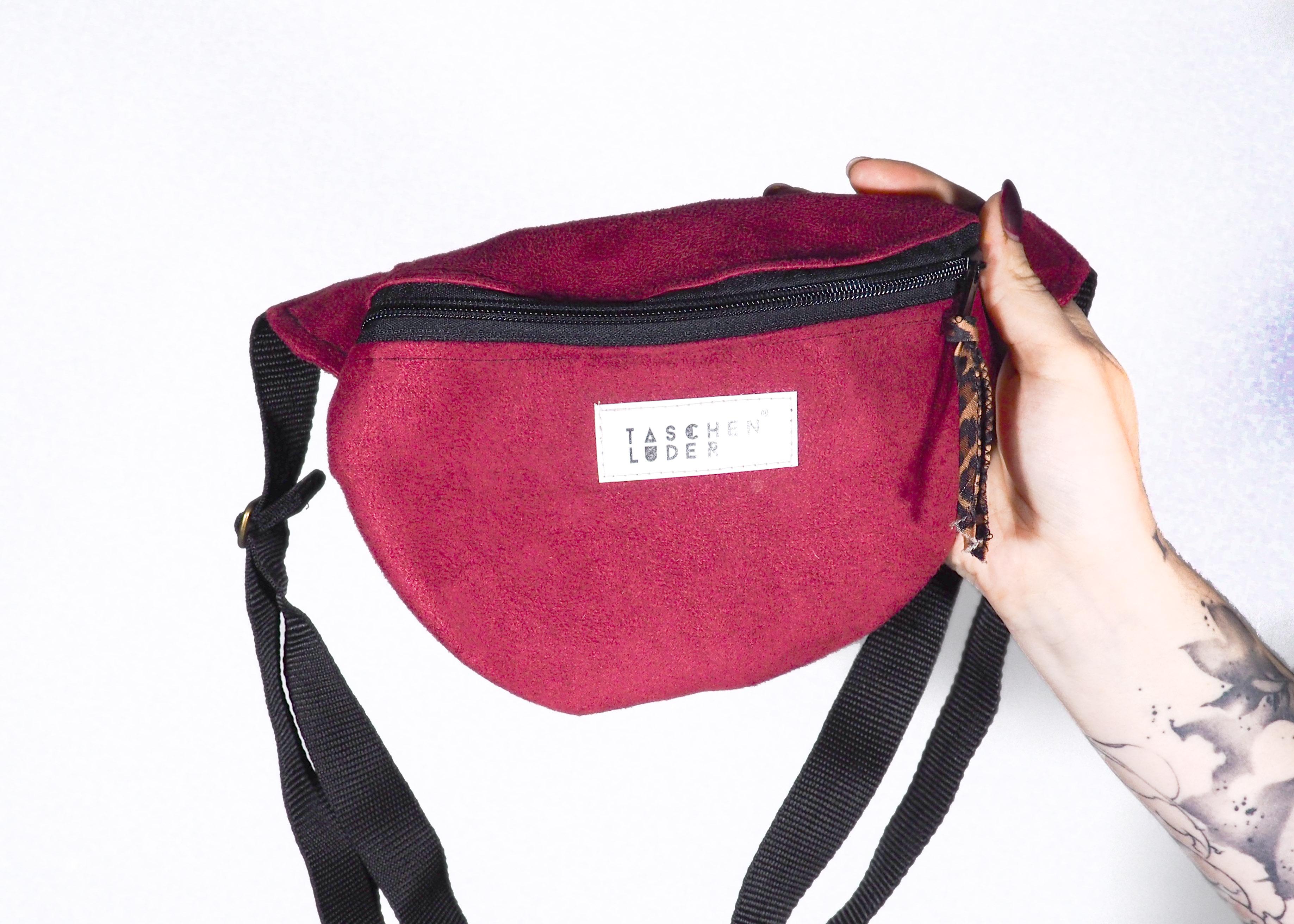Das kleine Bauchtaschenluder Mini Red-Leo-Velvet ist perfekt für die kalte Jahreszeit um keine Großen Taschen mitnehmen zu müssen und schick auszusehen – kostenfreier Versand innerhalb Deutschland