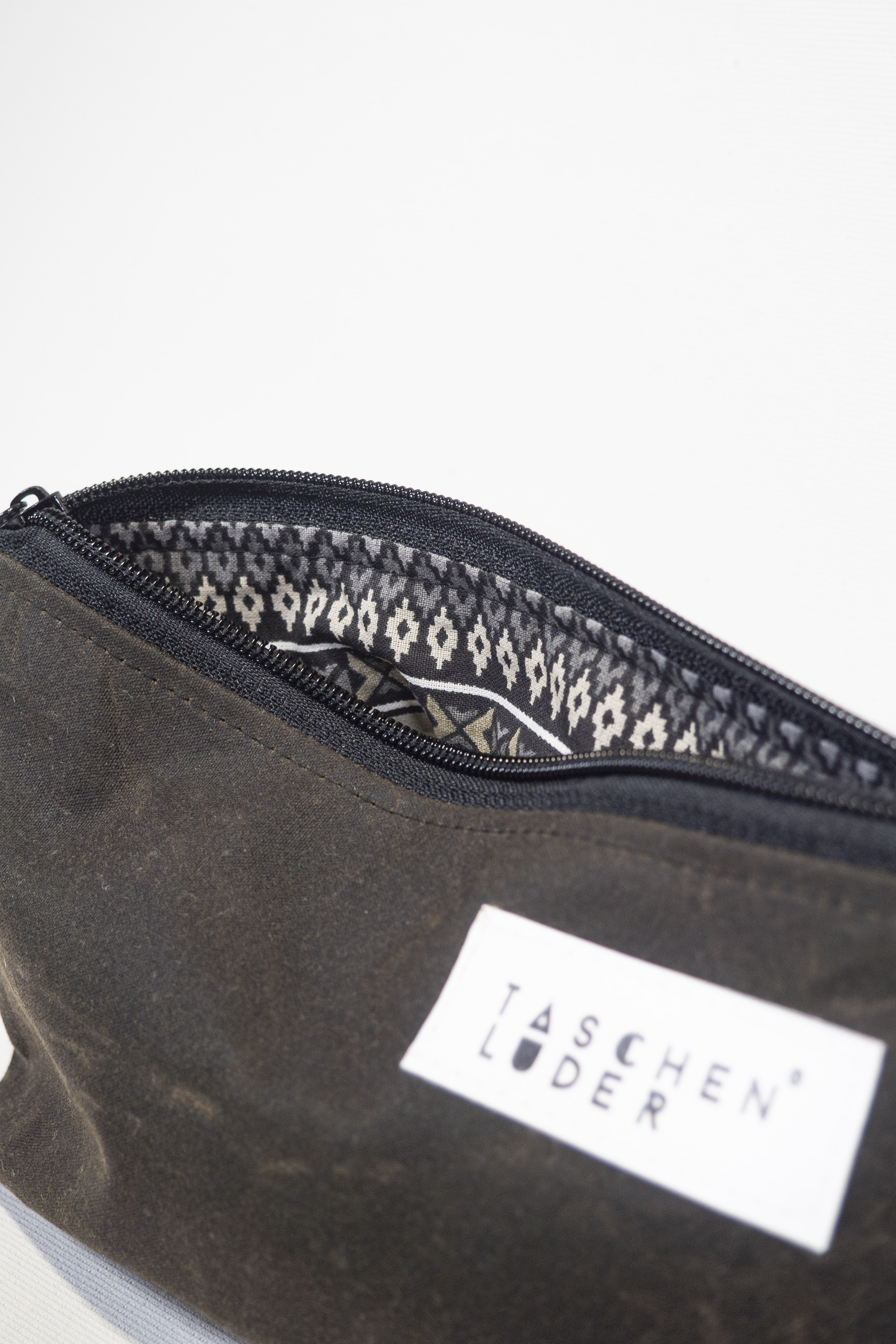 Das Mäppchenluder aus schickem dunkel braunem Oilskin hat die Maßen von 17 x 10 x 5 cm und innen wartet ein modisches Muster auf dich, genauso wie ein kostenfreier Versand!