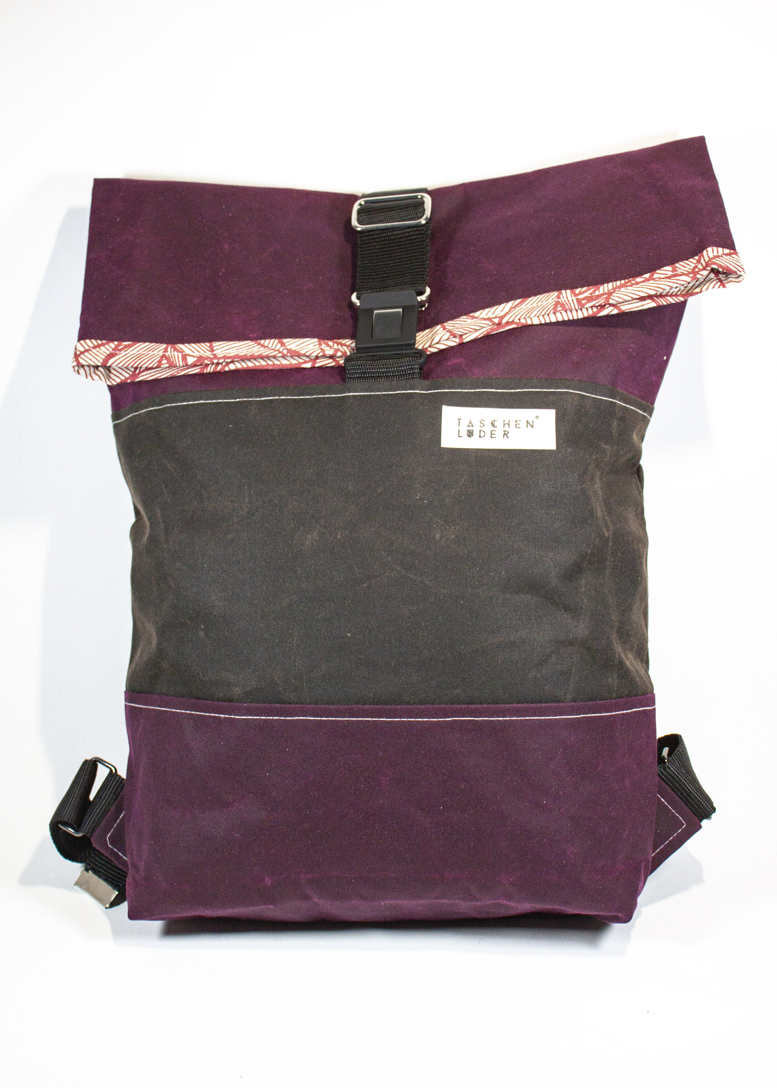 Hier stellt sich unser Rolltopluder aus Oilskin in Beere und Braun vor! 🖤 In unsere Rolltopluder ‚Classic‘ passen Geldbeutel, Schlüssel, 4 x 0,33L Limonade und natürlich die Falafeln rein. Dein Luder ist auch A4 tauglich und hat Platz für deinen großen DIN A4 Ordner – Versand ist immer Kostenfrei in Deutschland